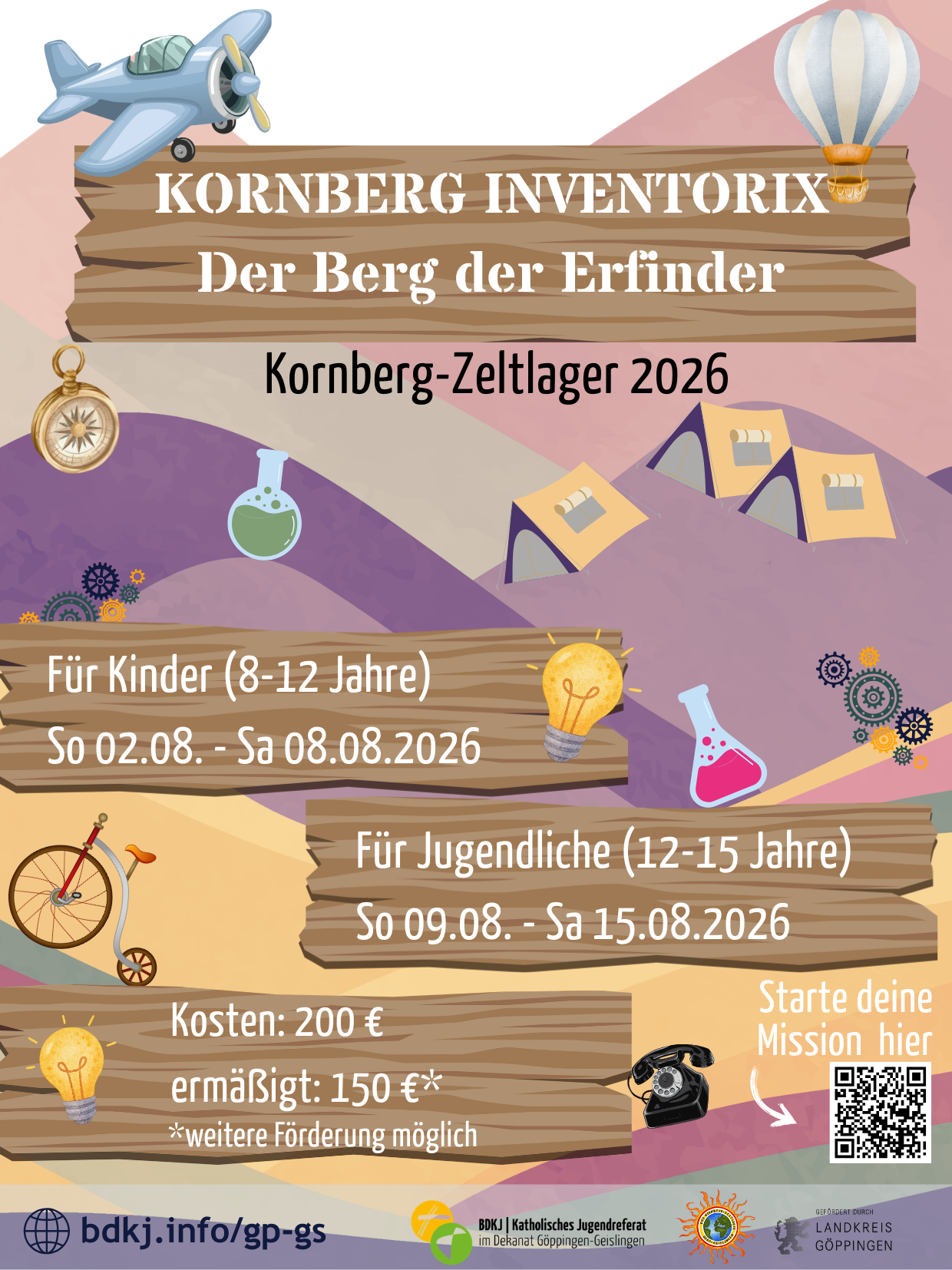 Bist du bereit für eine Woche voller Abenteuer, spannender Spiele und und genialer Erfindungen mitten in der Natur? Dann komm mit auf den Kornberg Inventorix - den Berg der Erfinder!