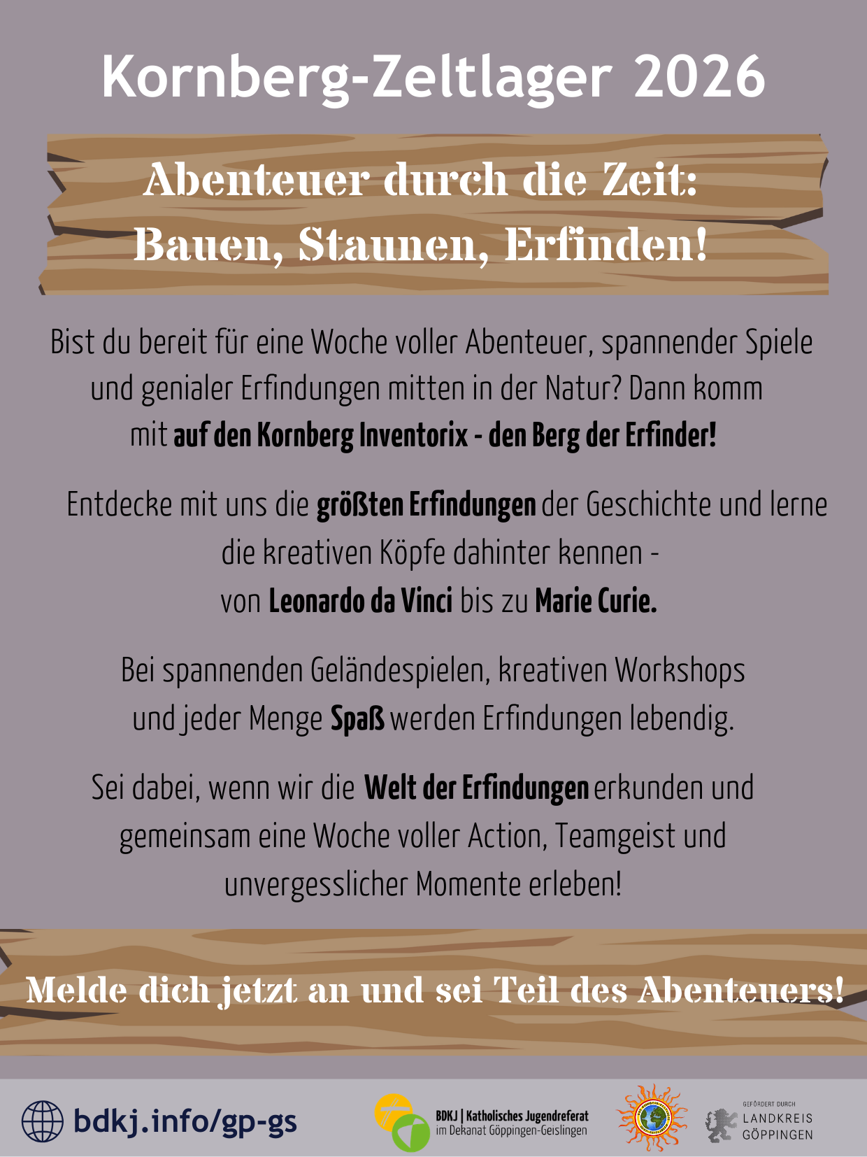Kornberg-Zeltlager 2026 - Abenteuer durch die Zeit: Bauen, Staunen, Erfinden!