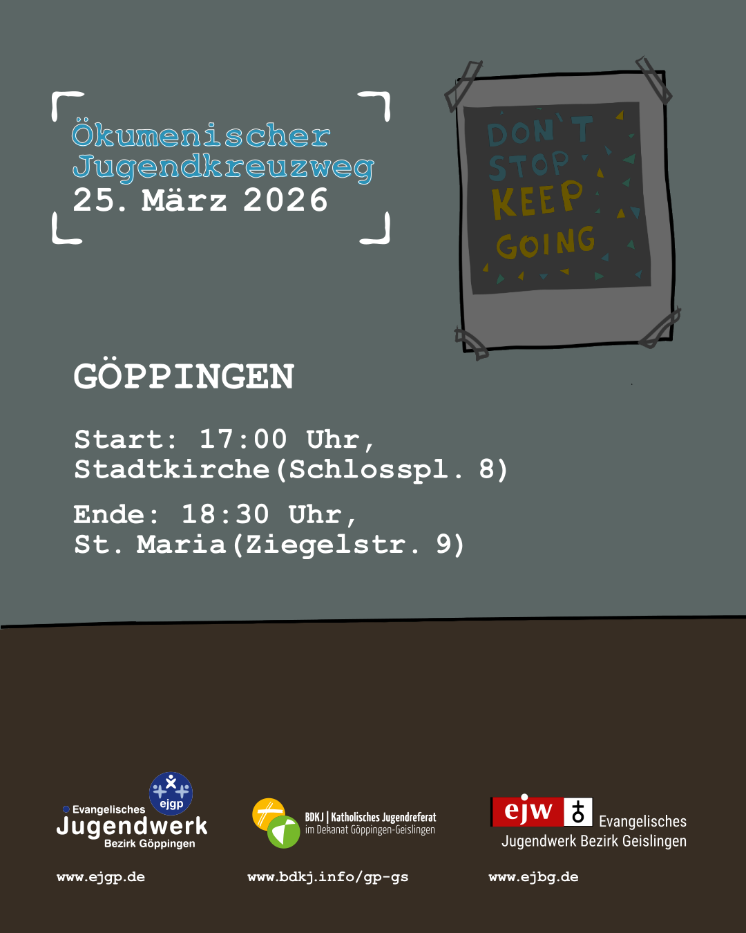 Die Infos zum Ökumenischen Jugendkreuzweg gibt's auch auf Instagram unter: ➚ jkw_gp_gs