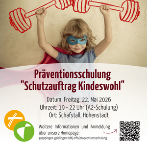 Um dies sicher zu stellen, ist es wichtig, dass alle, die mit Kindern und Jugendlichen in Kontakt sind entsprechend geschult werden. Als Jugendreferat bieten wir hierfür Präventionsschulungen speziell für den Bereich Jugendarbeit im Format A2 (3 Stunden) an. Die Schulung ist kostenlos.